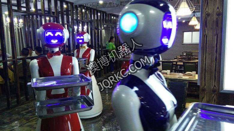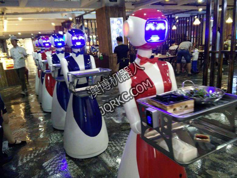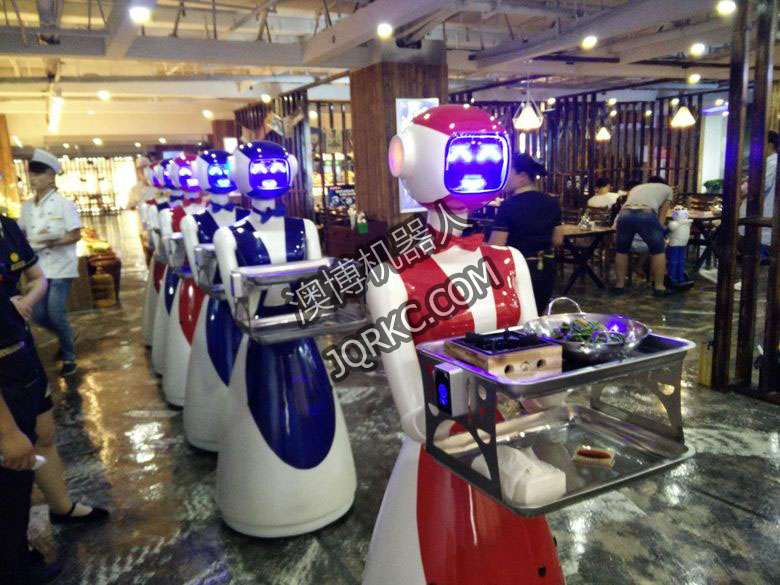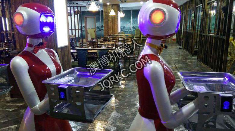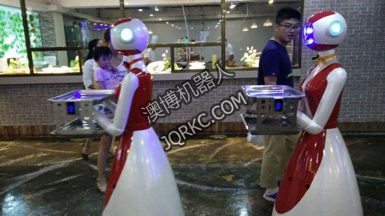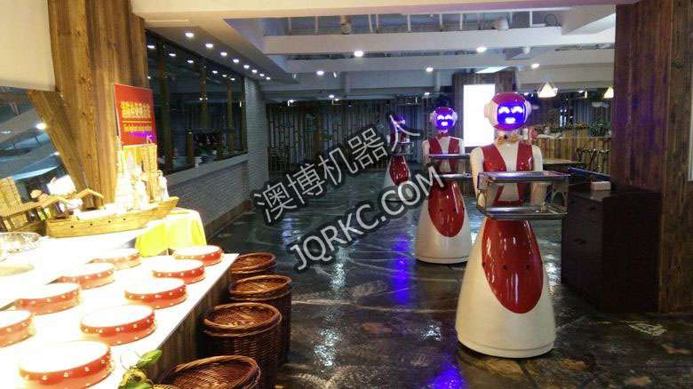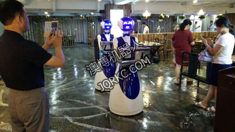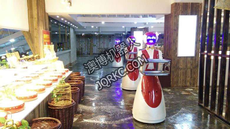 機(jī)器人餐廳使用六臺送餐機(jī)器人現(xiàn)場
