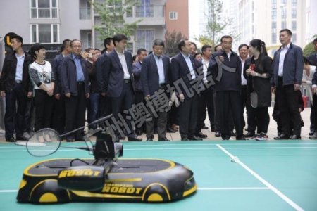 總理考察智能機器人 與羽毛球機器人切磋球技
