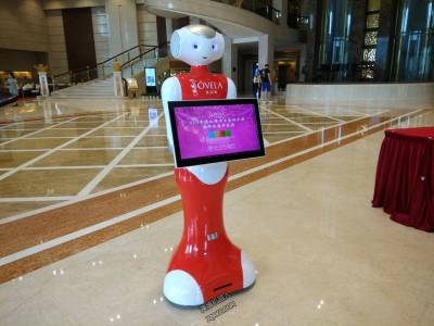 迎賓機器人采用嵌入式系統(tǒng),具有告促銷、迎賓導(dǎo)購、智能安保、云端語音互動、語音控制、智能講解、24小時安保預(yù)警防盜、防暴力、防火災(zāi)等功能。 在公共場所以迎賓機器人作為企...